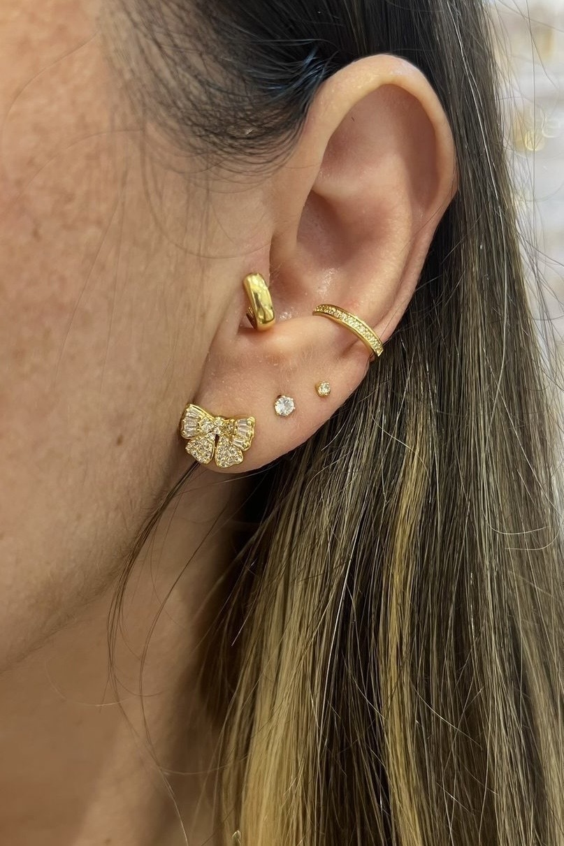 Brinco Laço Cravejado Banhado em Ouro 18k